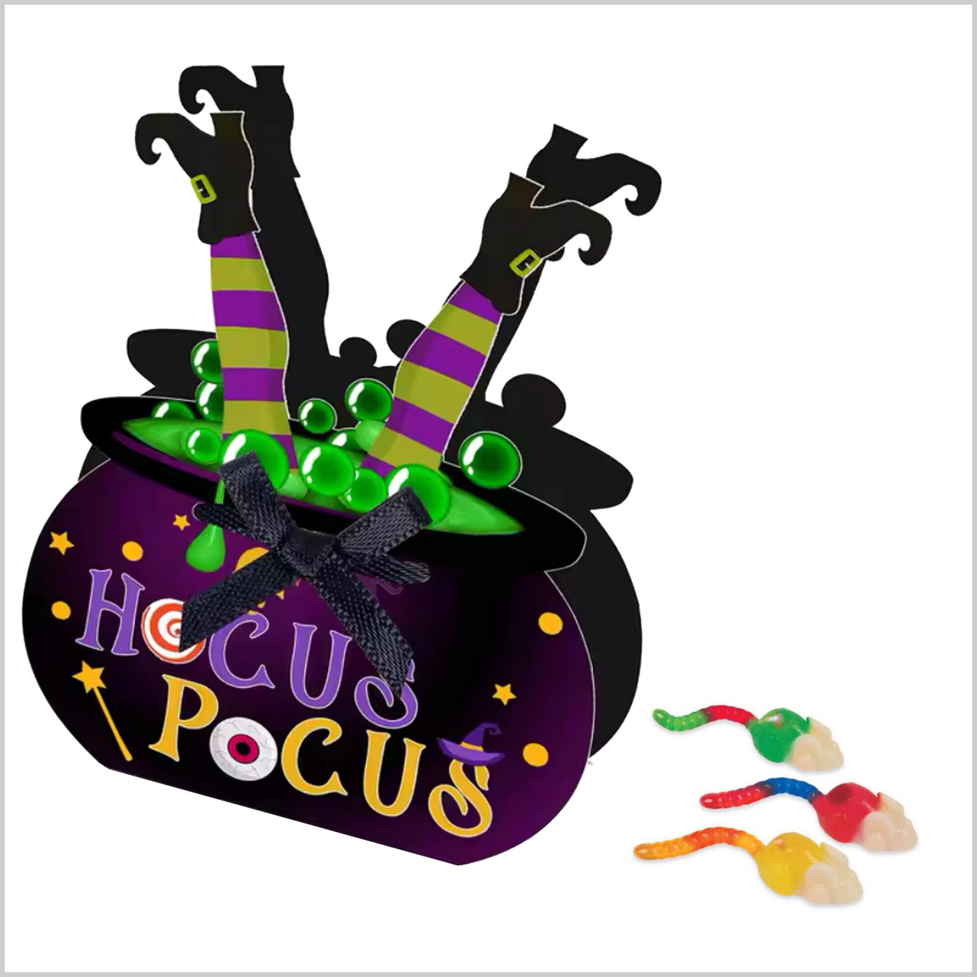 Caja en forma de Caldero con brujita rellena con 6 chuches en forma de ratoncito