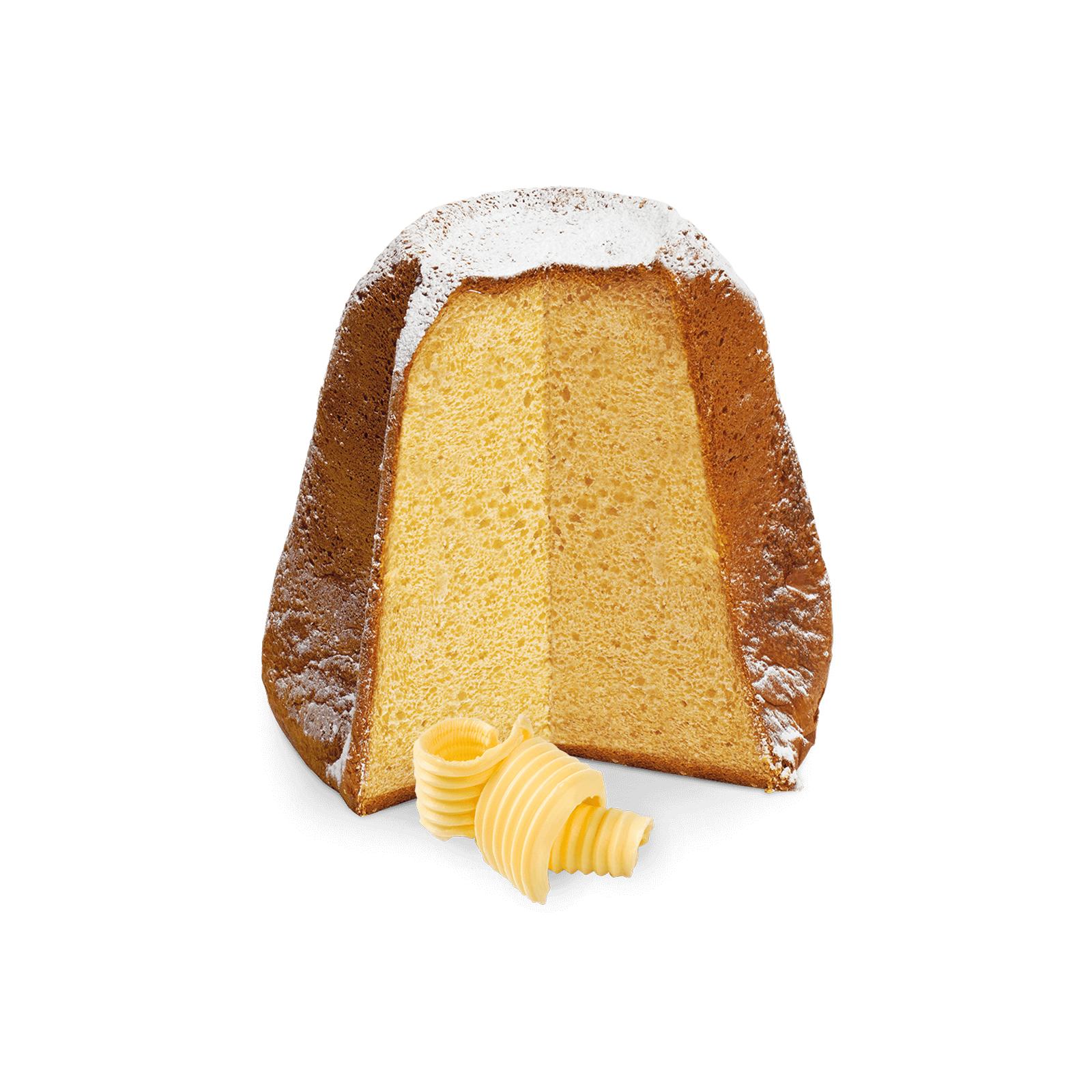 El clásico Pandoro artesanal tiene una pasta suave de color amarillo dorado, rica en mantequilla fresca de montaña y vainilla Mananara natural de Madagascar (*Slow Food Presidium). La levadura es natural, partiendo de una masa madre utilizamos 72 horas de paciente elaboración artesanal. El resultado es un postre muy digerible y suave, con un aroma y sabor genuino e inconfundible. Los ingredientes básicos son todos frescos: huevos de gallinas camperas en Italia, leche, nata y mantequilla de montaña. El clásico Pandoro se puede decorar, a la hora de servir, con una ligera pizca de azúcar glas, incluido en el paquete