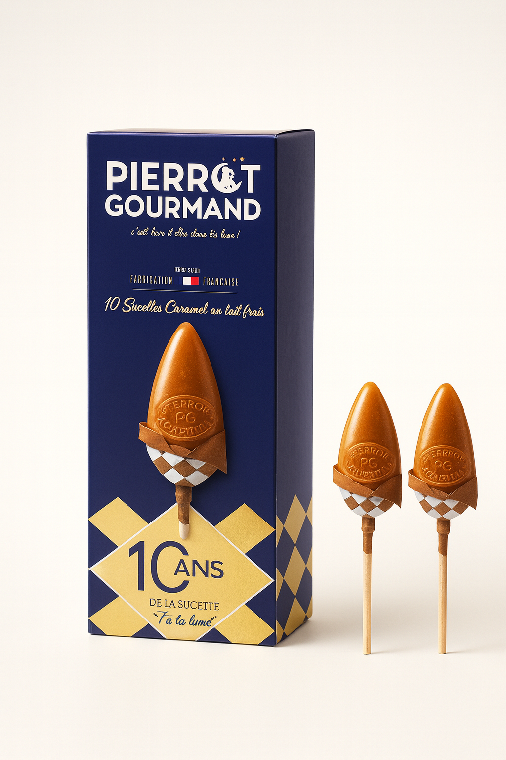 Auténtico emblema de la repostería, la auténtica piruleta de caramelo de leche fresca Pierrot Gourmand hace las delicias de los amantes de la dulzura... ¡desde hace casi cien años!