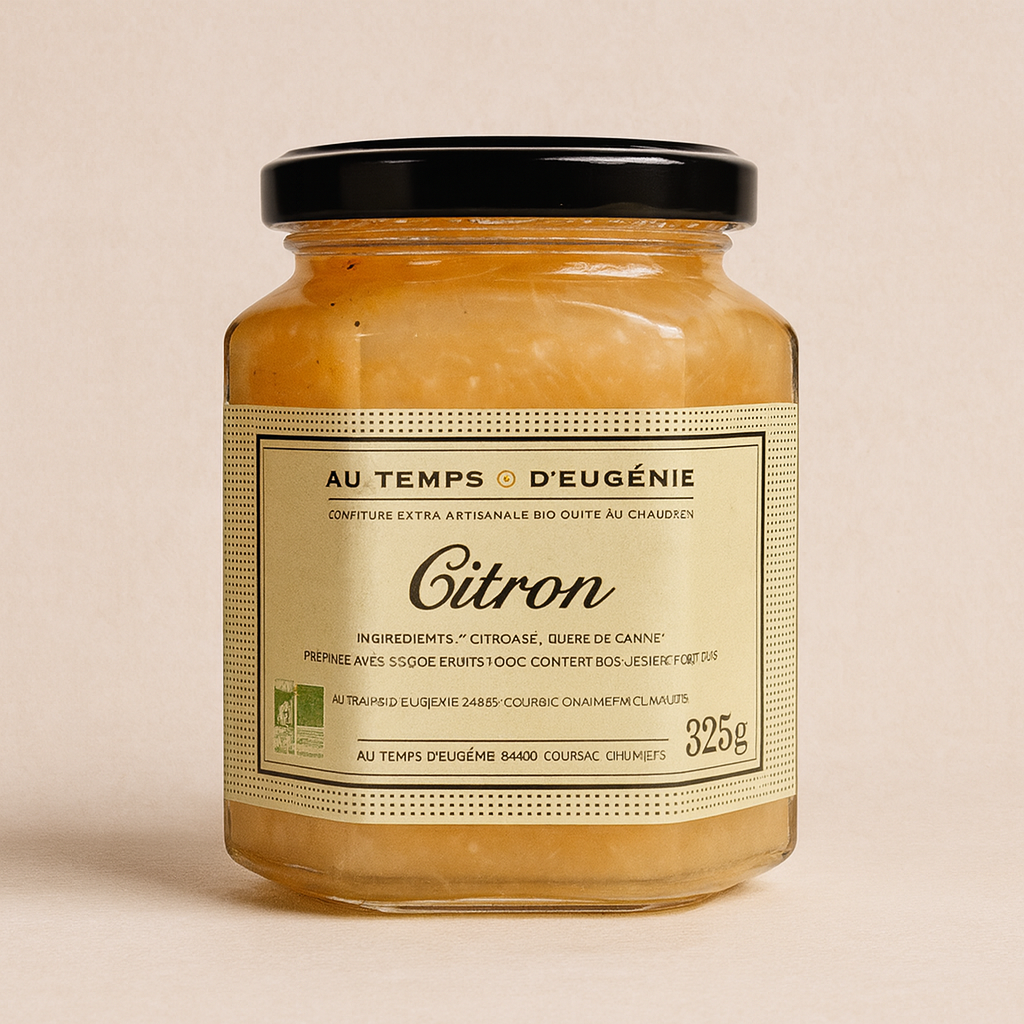 Todas las mermeladas de Au Temps d'Eugénie se elaboran con generosidad y a la antigua usanza en calderos de cobre y removidos a mano con palas de madera. Las frutas maduras liberan su sabor y color logrando un auténtico placer gastronómico.