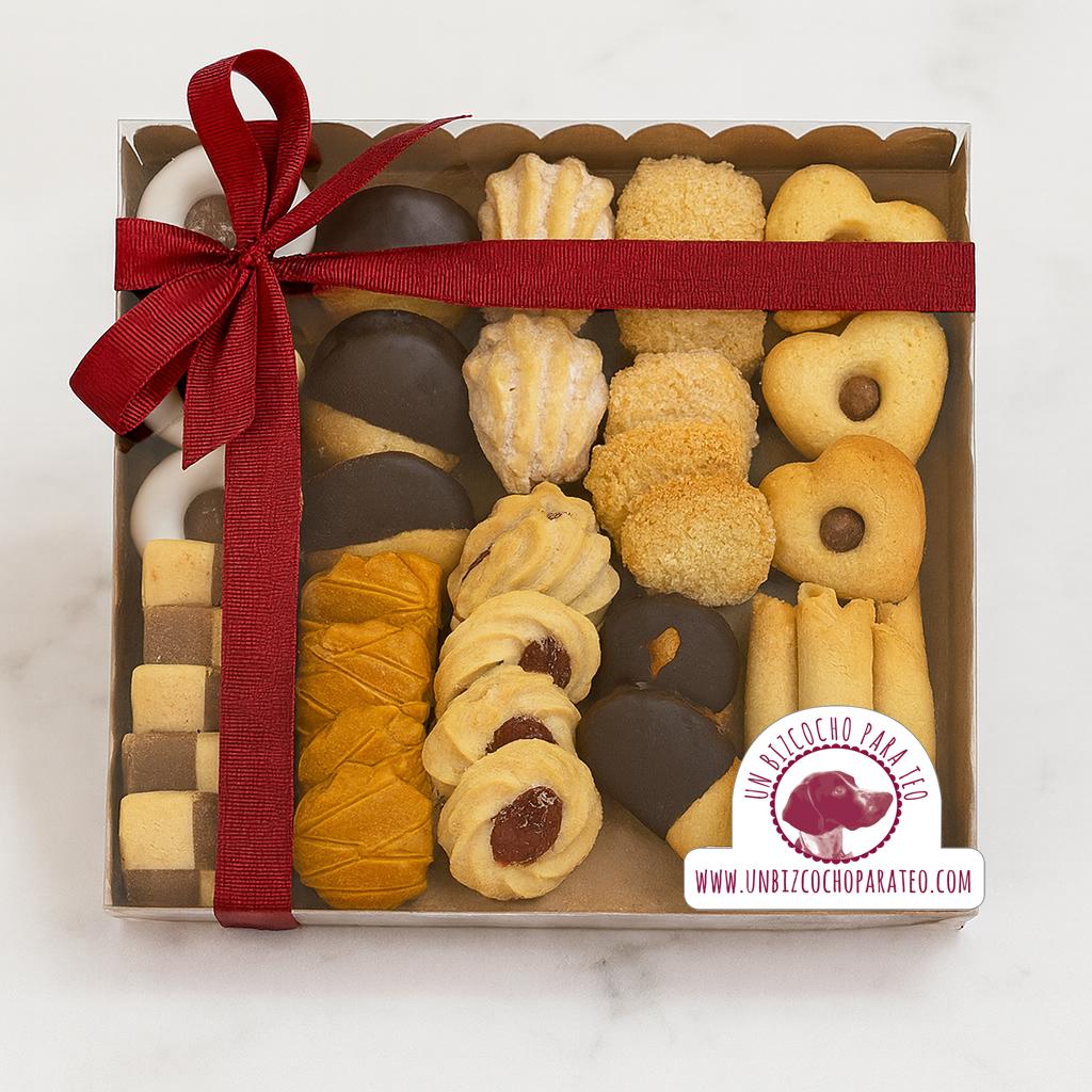 Surtido variado de pastas de Té de mantequilla presentadas en una preciosa caja de regalo