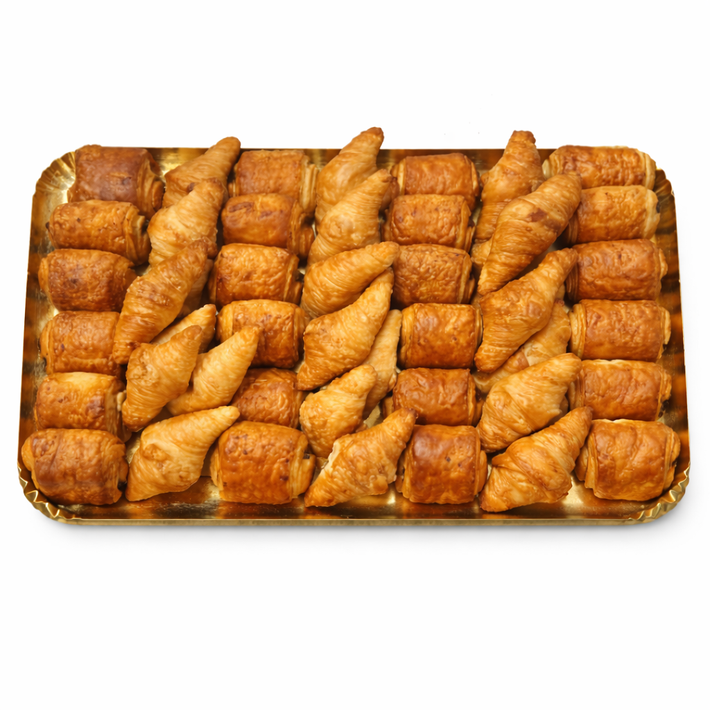 Bandeja de mini viennoiseries. Son la opción perfecta para ofrecer un buffet de desayuno o merienda o completar un catering.