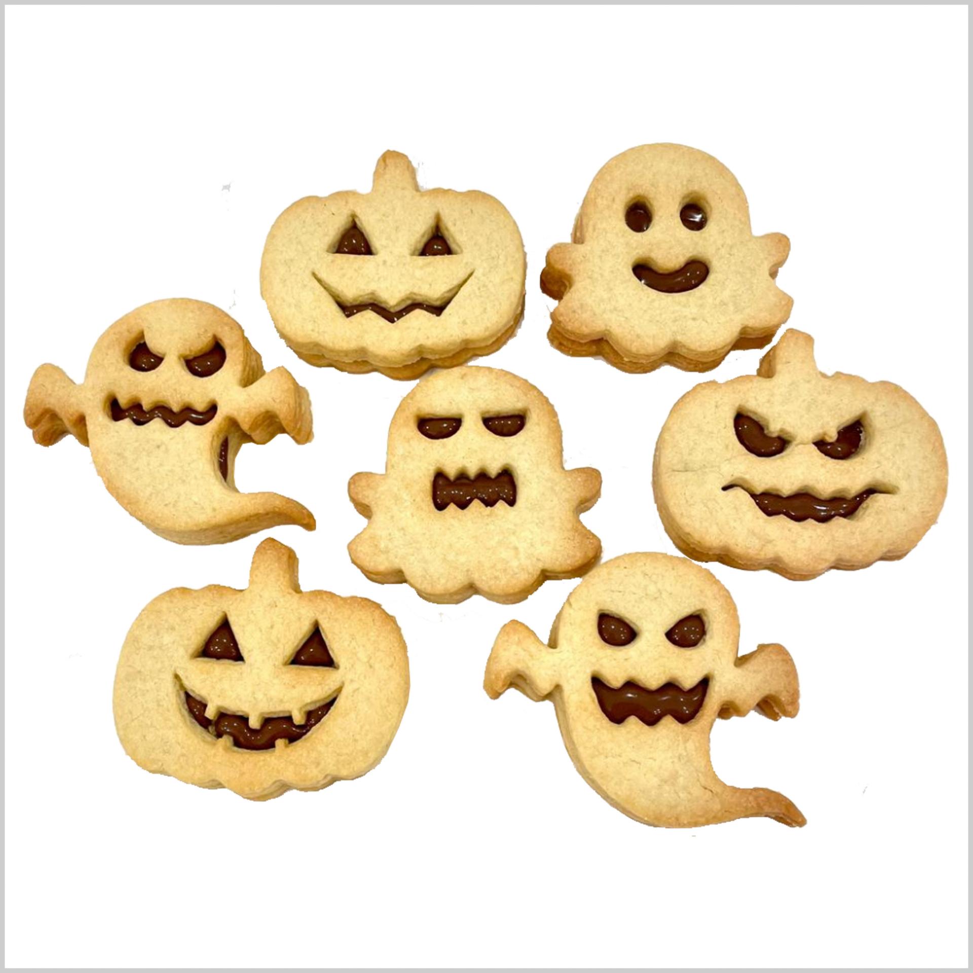 Galleta Linzer de mantequilla con formas de Halloween rellenas de nuestra deliciosa Nutella.