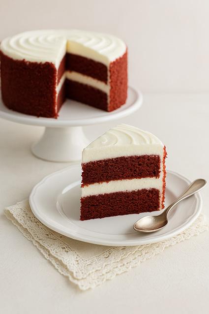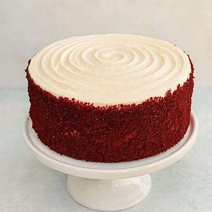Tarta elaborada con dos capas de bizcocho de Red Velvet rellena y recubierta de crema de queso.