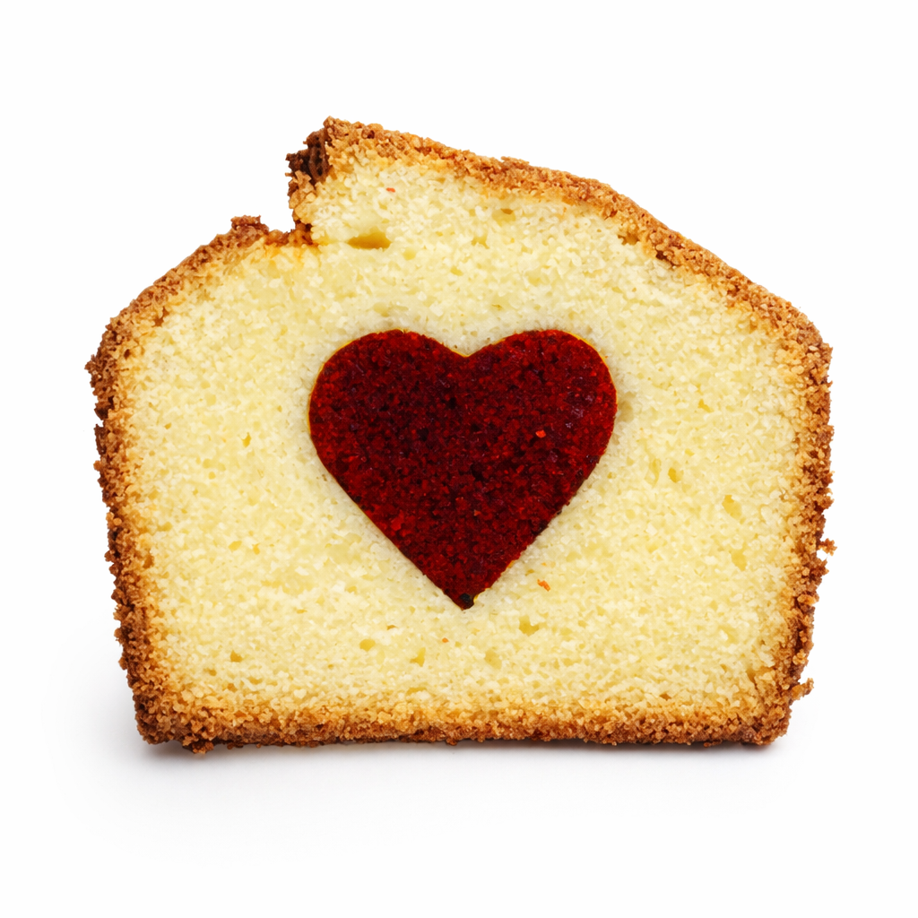Porción de nuestro clásico bizcocho Natural con un toque de Queso con centro de corazón de red velvet.