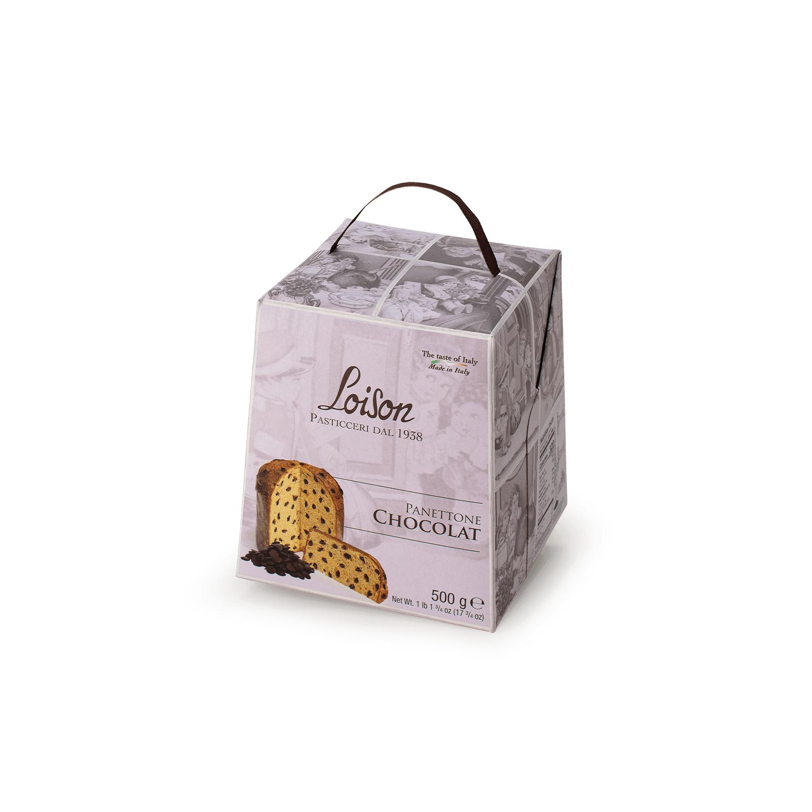 El Panettone Chocolat es un postre de masa blanda con levadura natural, obtenido por fermentación natural de nuestra levadura madre. La masa está enriquecida con deliciosas chispas de chocolate amargo.