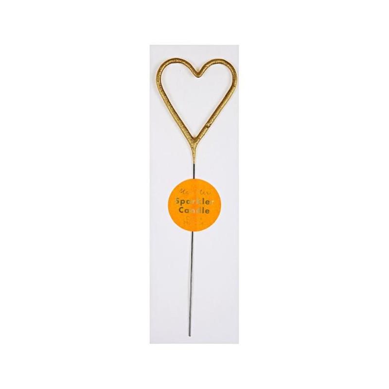Bengala dorada con forma de corazón, ideal para decorar las tartas en cualquier tipo de celebración.