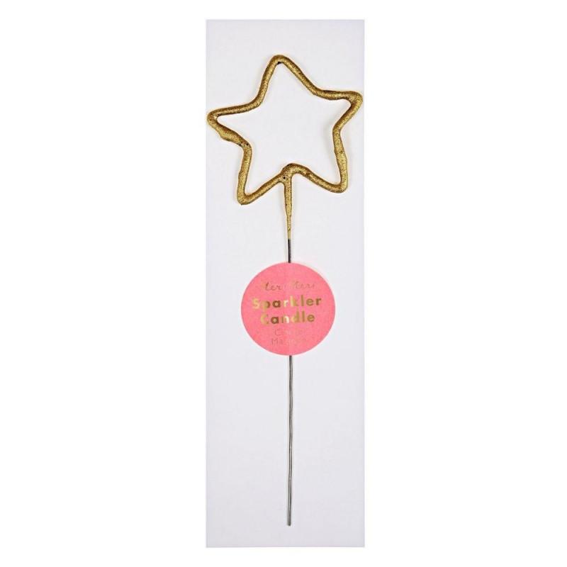 Bengala dorada con forma de estrella, ideal para decorar las tartas en cualquier tipo de celebración.